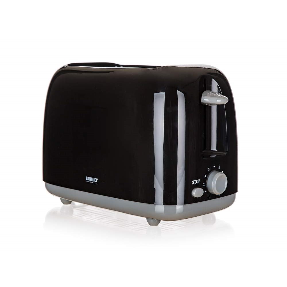 Elektrický topinkovač na dva tousty s příkonem 750 W má 6 stupňů nastavení intenzity opečení, automatické vypínání, tlačítko na okamžité zastavení opékání a výsuvnou misku pro snadné odstranění drobků.