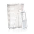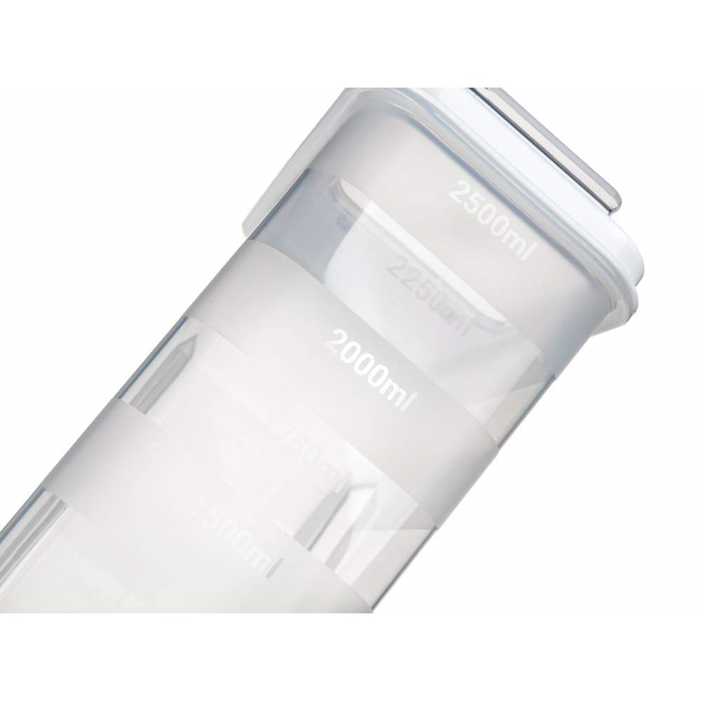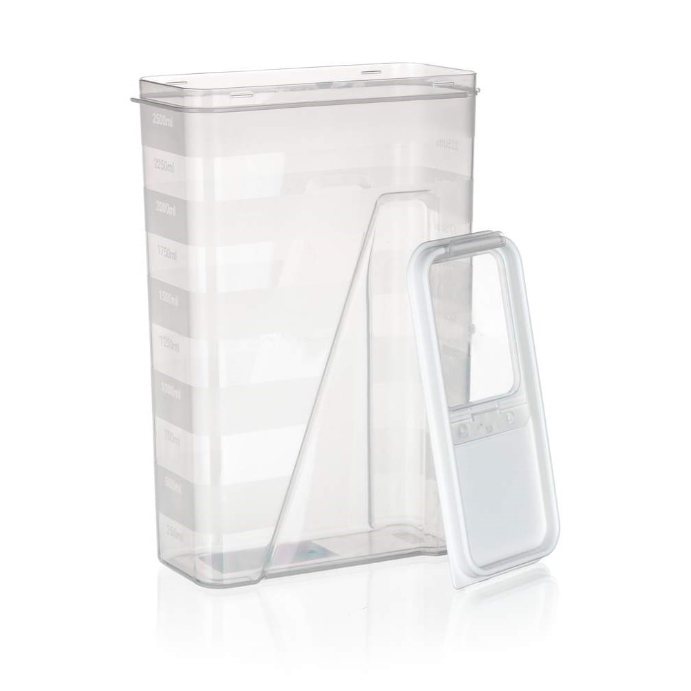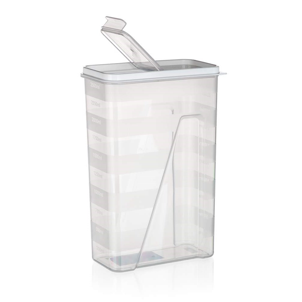 Transparentní dávkovací plastová dóza Culinaria o objemu 2,5 l, s víčkem v bílé barvě. Dóza je praktickým pomocníkem na ukládání těstovin, luštěnin, mouky a jiných potravin. Opatřena měřící ryskou s odstupem 250 ml.