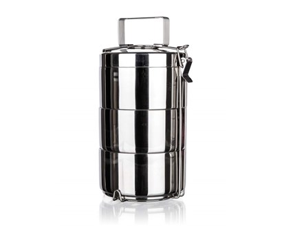 3dílný nerezový dvoustěnný jídlonosič AKCENT je určený k přenášení potravin a hotových pokrmů. Sada obsahuje 3 nerezové dvoustěnné misky o průměru 14 cm a výšce 7 cm. Objem každé misky je 0,74 l. Díky dvoustěnnému provedení je praktický pro uchování teplého pokrmu během přenášení.